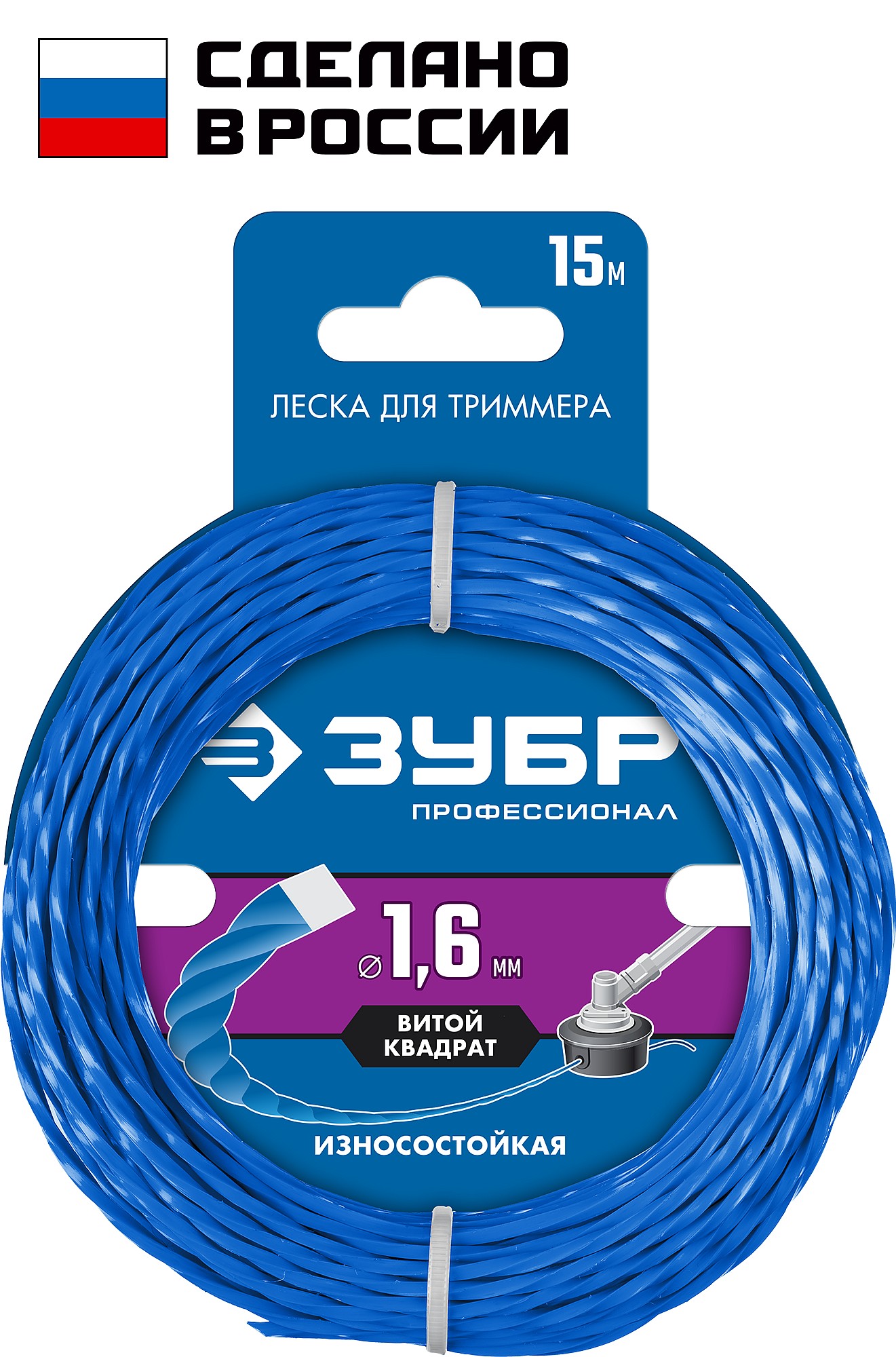 ЗУБР ВИТОЙ КВАДРАТ, 1.6 мм, 15 м, леска для триммера, Профессионал (71030-1.6)
