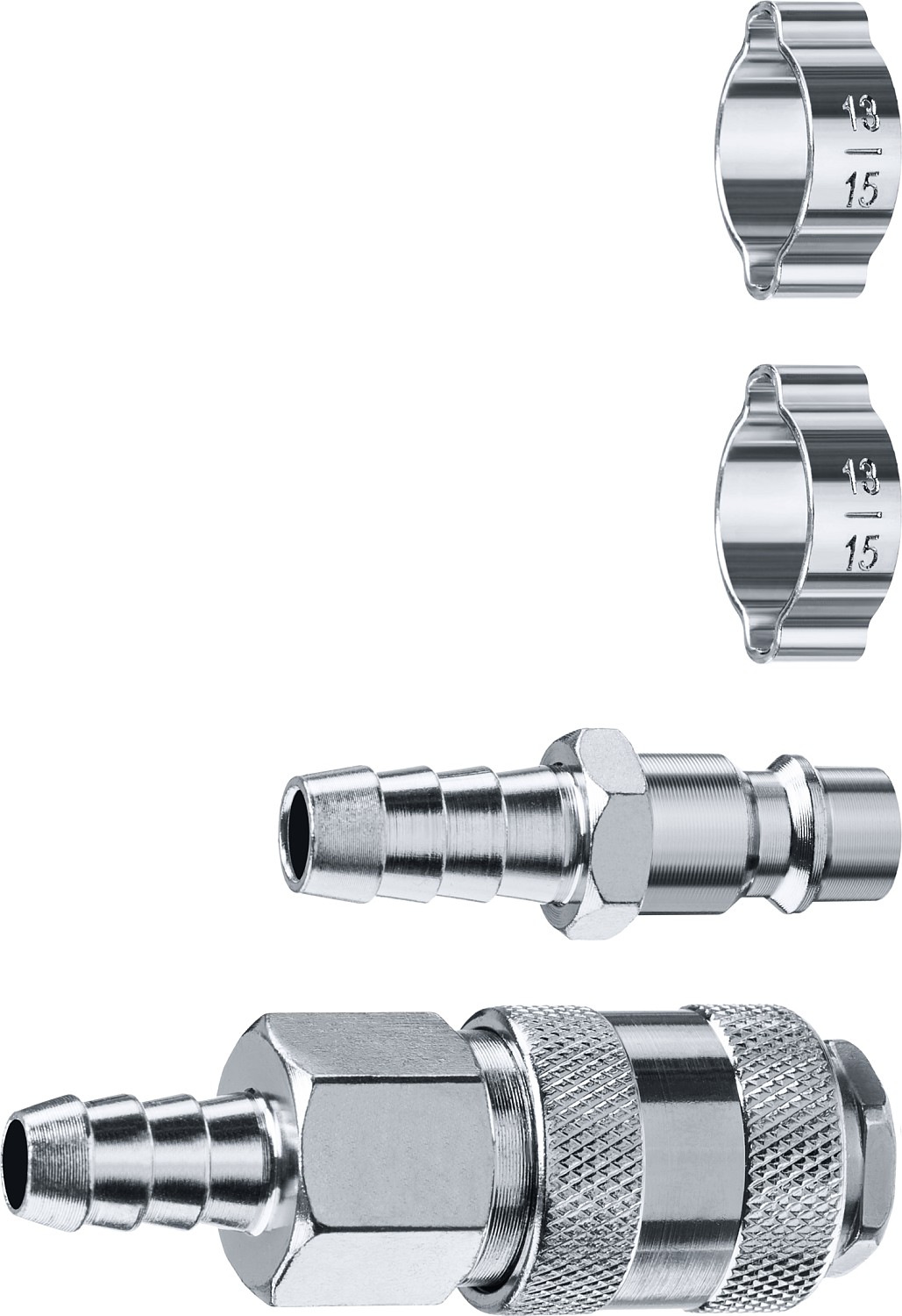 KRAFTOOL (штуцер ″елочка″, 10 мм - рапид муфта) + (рапид штуцер-штуцер ″елочка″, 10 мм) + (обжимные хомуты 2 шт), набор (06599-10-H)