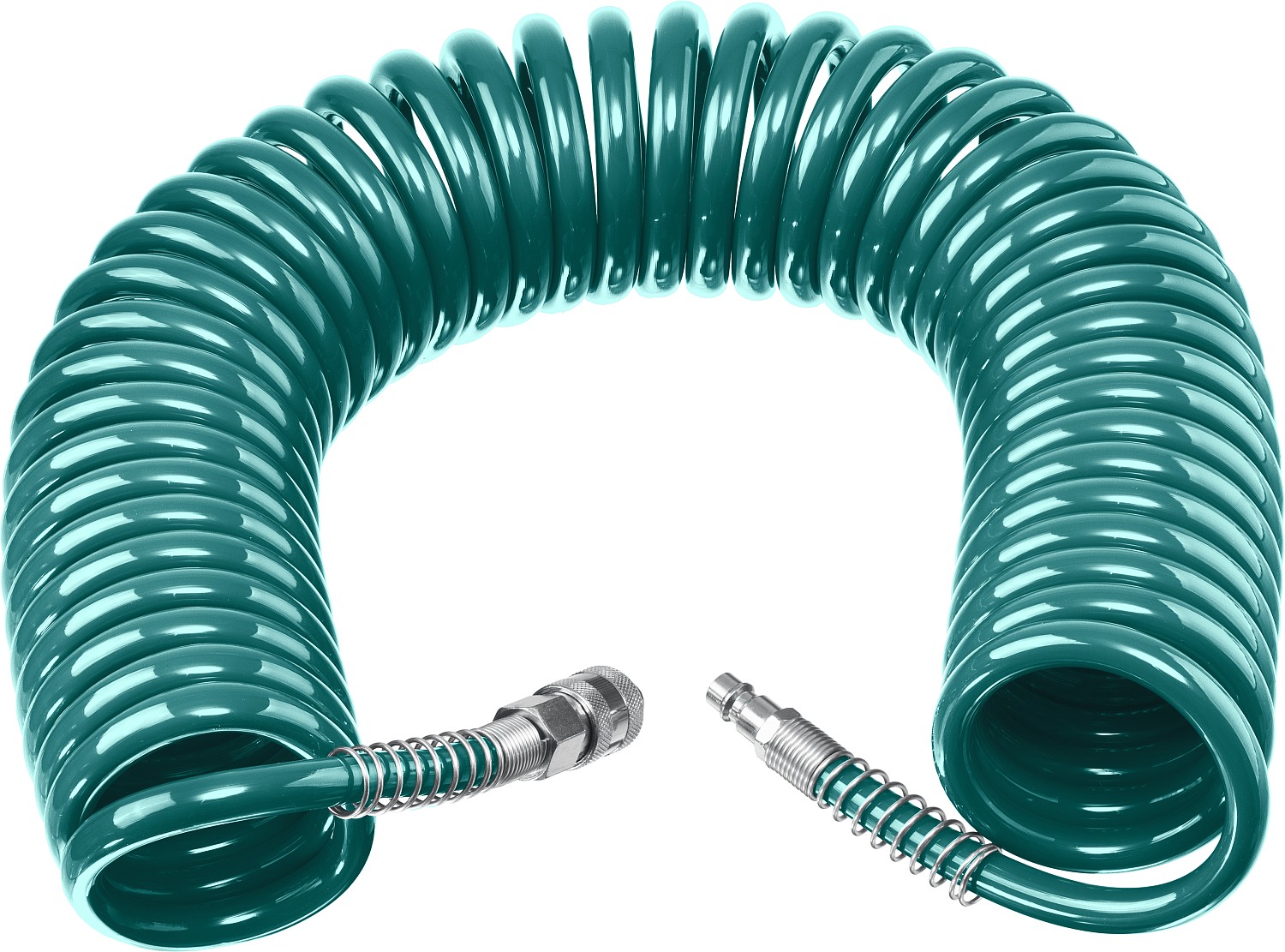 KRAFTOOL 15 м, 8 х 12 мм, 15 бар, воздушный спиральный шланг с фитингами рапид (06590-15)