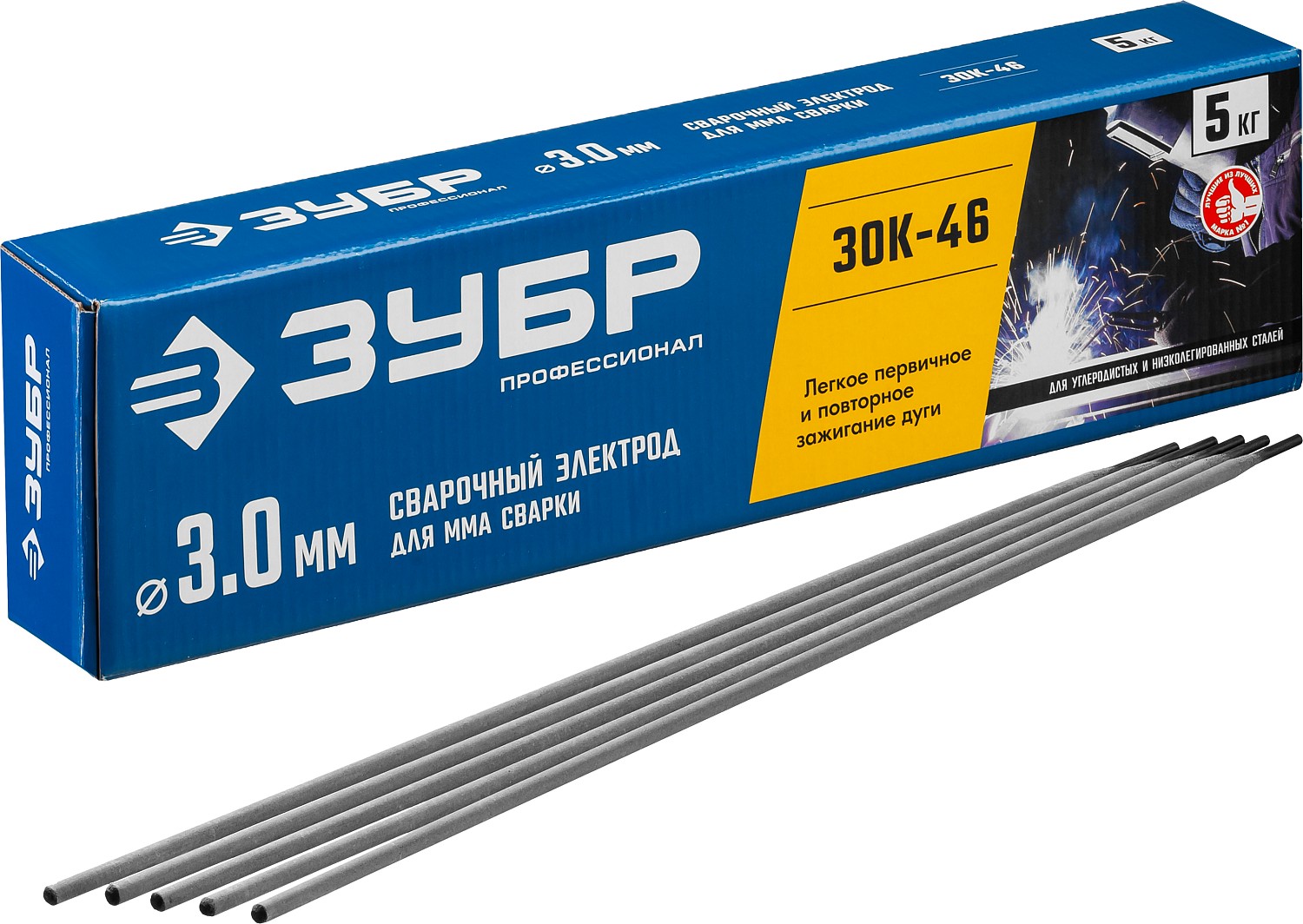 ЗУБР Д 3.0 х 350 мм, 5 кг в коробке, ЗОК-46 рутил-целлюлозный, электрод сварочный, Профессионал (40035-3.0)