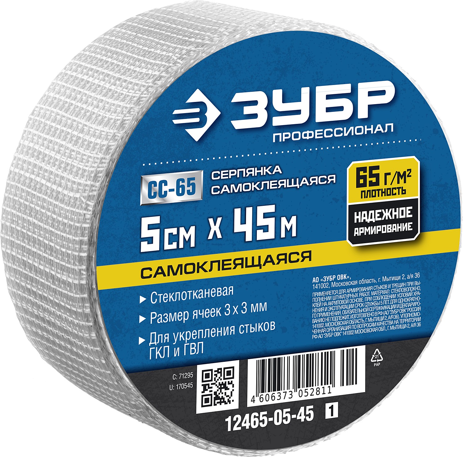 ЗУБР 5 см х 45 м, 3 х 3 мм, самоклеящаяся, стеклотканевая сетка, Профессионал (12465-05-45)