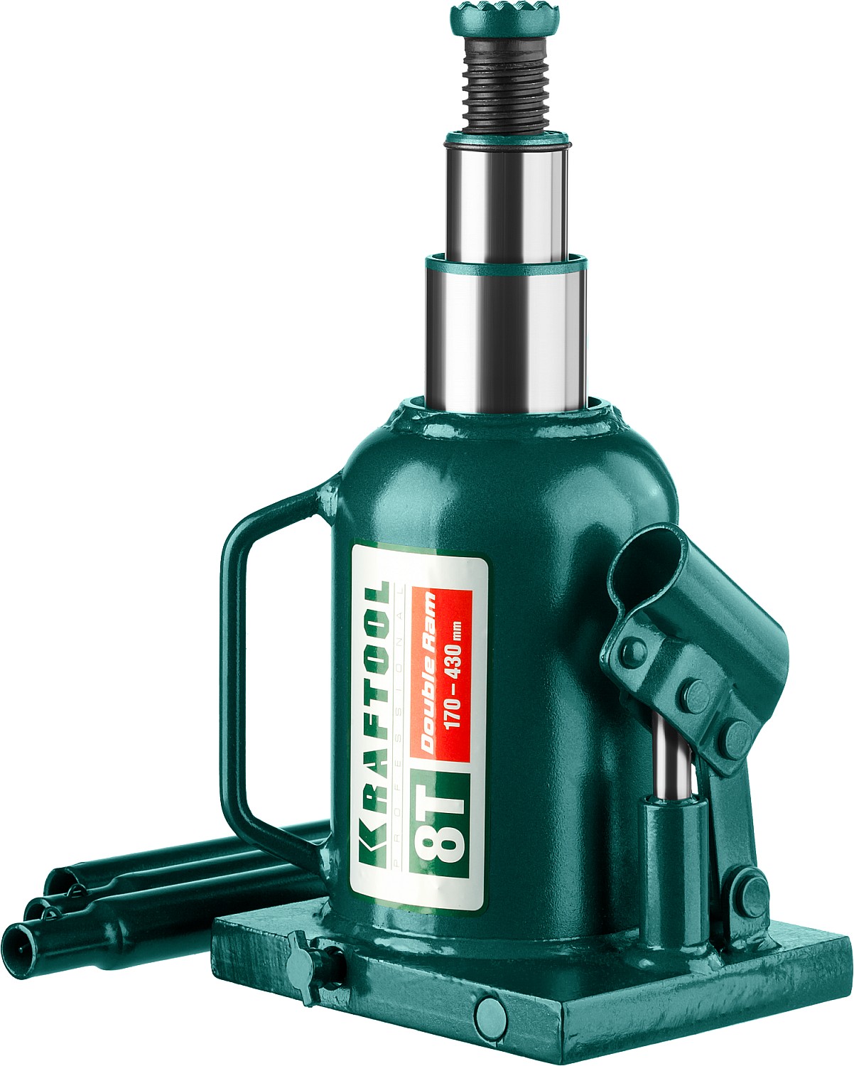 KRAFTOOL DOUBLE RAM, 8 т, 170 - 430 мм, с увеличенным подъемом, двухштоковый бутылочный домкрат (43463-8)