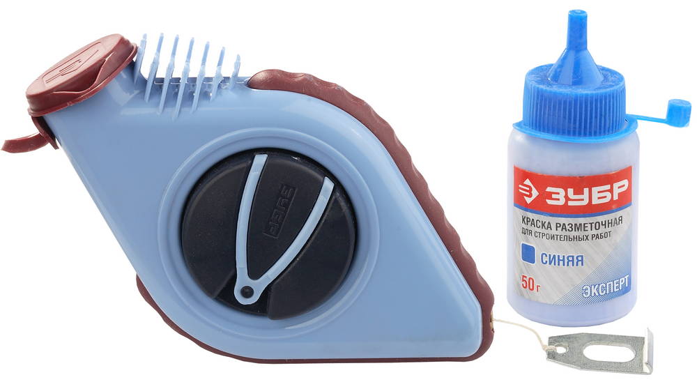 Шнур-отвес используется при строительных и отделочных работах. Данное устройство позволяет контролировать вертикальность линий. Для удобства использования, шнур длиной 30 м находится в пластмассовом корпусе, который оснащен механизмом сматывания. В комплекте синяя краска, которая Используется для окраски малярных шнуров при разметочных работах, прекрасно ложится на нить, что позволяет оставлять четкий след на размечаемой плоскости.