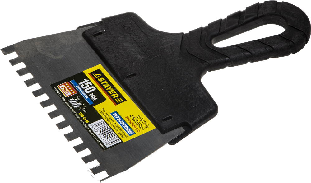 STAYER PROFlat, 150 мм, зуб 6 х 6 мм, пластиковая ручка, зубчатый, нержавеющий фасадный шпатель, Professional (1009-15-06)