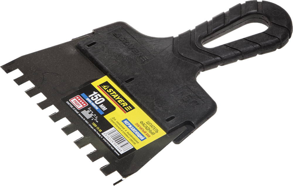 STAYER PROFlat, 150 мм, зуб 8 х 8 мм, пластиковая ручка, зубчатый, нержавеющий фасадный шпатель, Professional (1009-15-08)