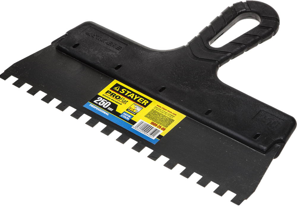 STAYER PROFlat, 250 мм, зуб 8 х 8 мм, пластиковая ручка, зубчатый, нержавеющий фасадный шпатель, Professional (1009-25-08)