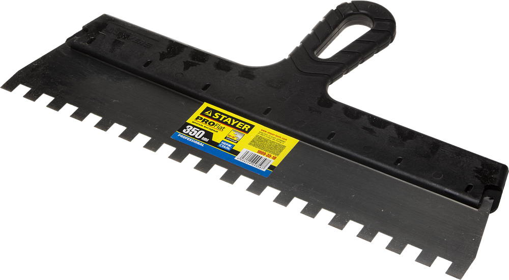 STAYER PROFlat, 350 мм, зуб 10 х 10 мм, пластиковая ручка, зубчатый, нержавеющий фасадный шпатель, Professional (1009-35-10)