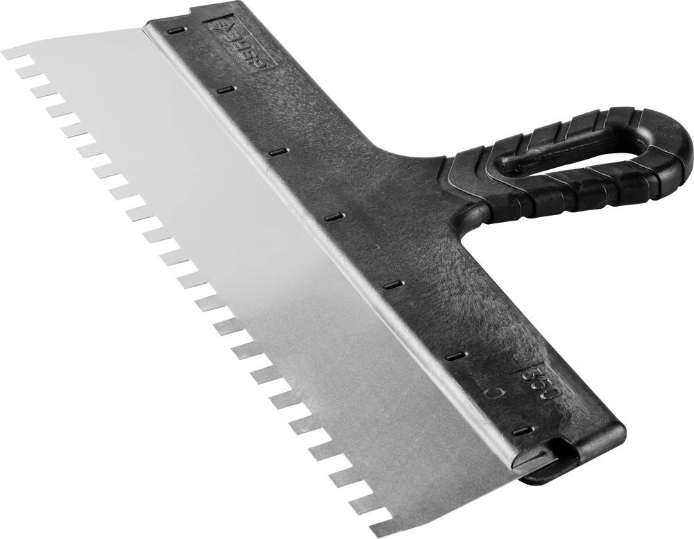 ЗУБР 350 мм, зуб 8 х 8 мм, пластиковая ручка, нержавеющий фасадный шпатель (10078-35-08)