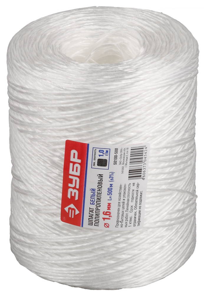 ЗУБР d 1.6 мм, 500 м, 1600 текс, 32 кгс, белый, полипропиленовый шпагат (50100-500)