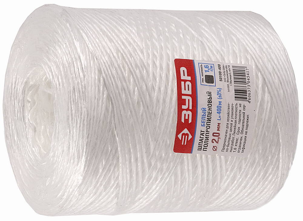 ЗУБР d 2.0 мм, 400 м, 1600 текс, 22 кгс, белый, полипропиленовый шпагат (50100-400)