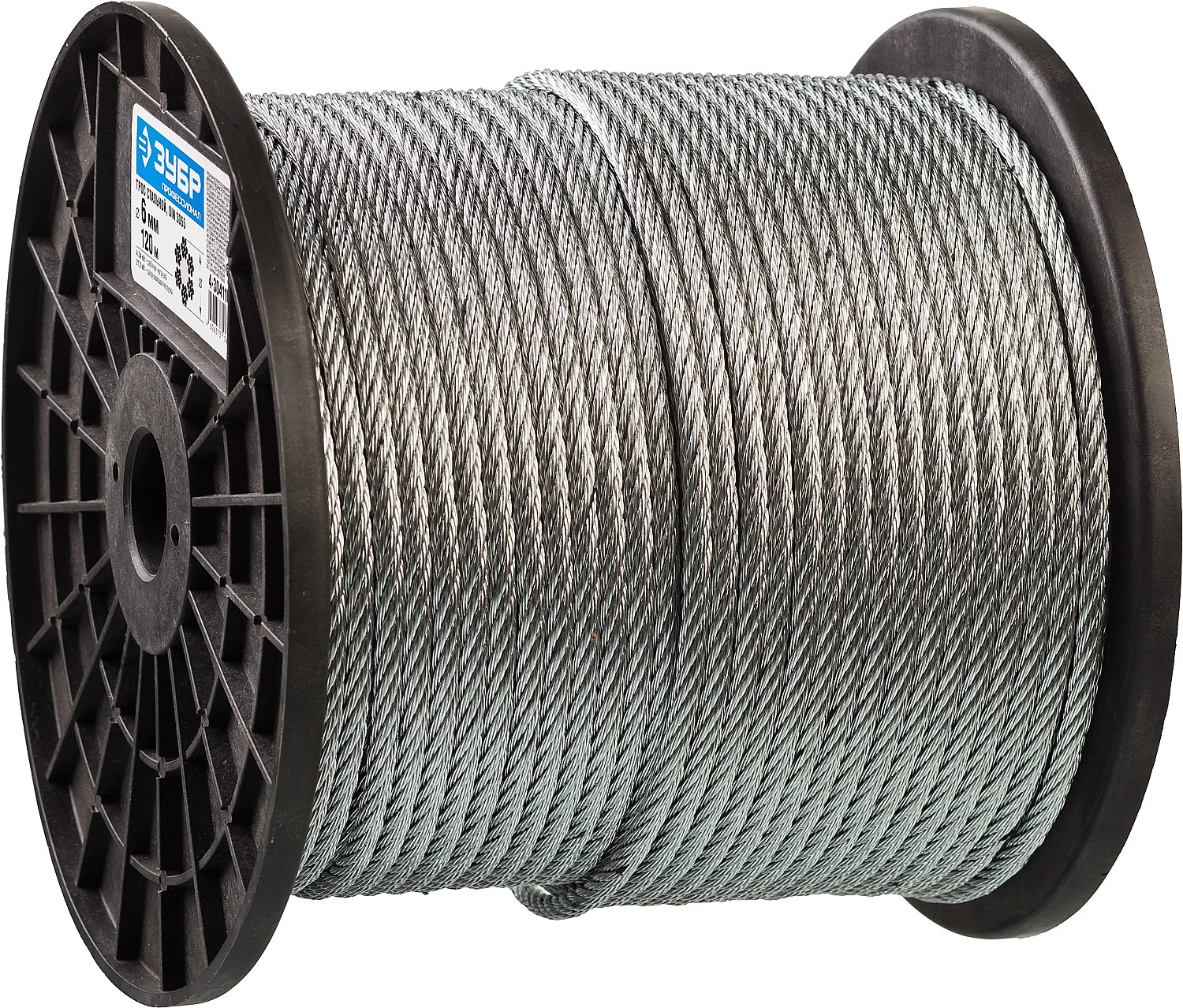 ЗУБР DIN 3055, свивка 6 x 7 + FC, 6 мм, L 120 м, стальной трос, Профессионал (4-304110-06)Увеличить картинку
