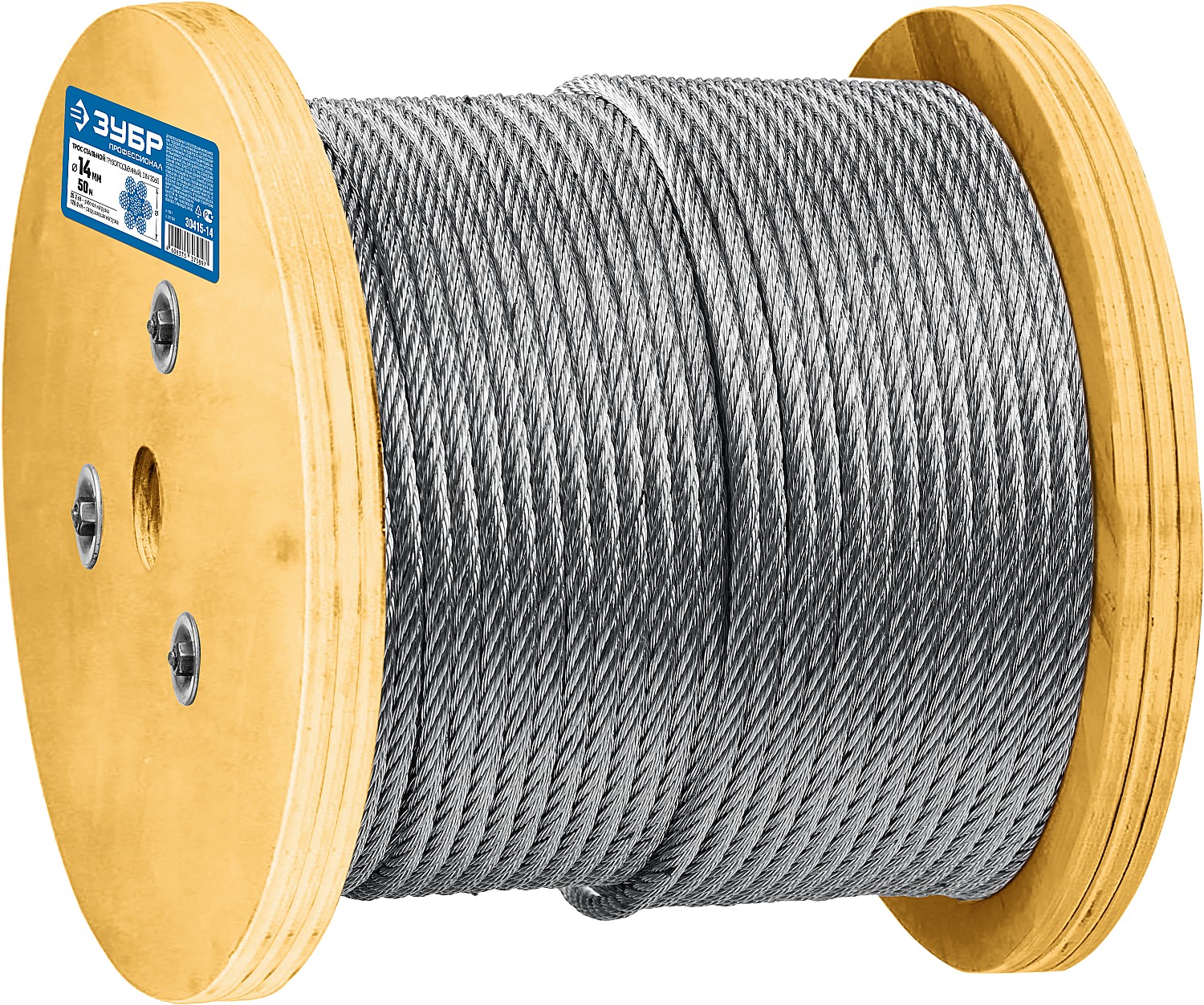 ЗУБР DIN 3060, свивка 6 х 19 + IWR, 14 мм, L 50 м, грузоподъемный стальной трос, Профессионал (30415-14)