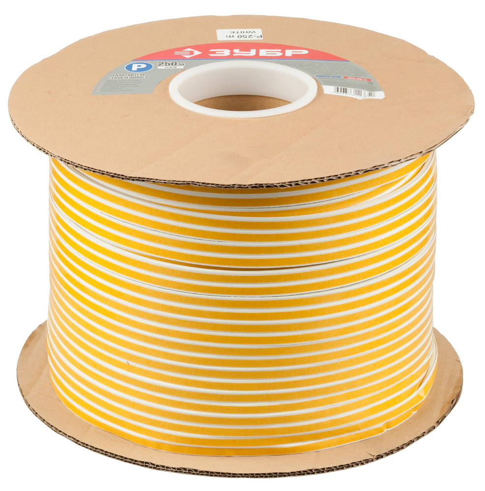 ЗУБР 250 м, P-профиль, размер 9 х 5.5 мм, белый, самоклеящийся резиновый уплотнитель (40922-250)