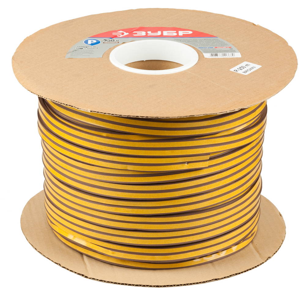 ЗУБР 250 м, P-профиль, размер 9 х 5.5 мм, коричневый, самоклеящийся резиновый уплотнитель (40932-250)