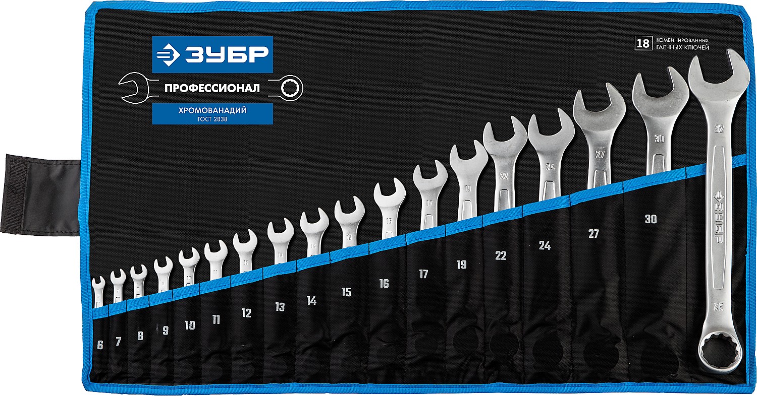 ЗУБР 18 шт, 6 - 32 мм, набор комбинированных гаечных ключей, Профессионал (27087-H18)