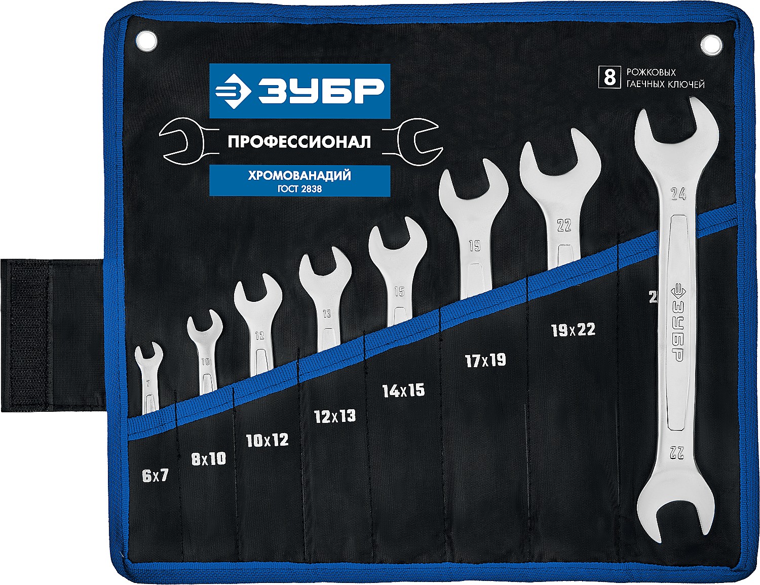 ЗУБР 8 шт, 6 - 24 мм, набор рожковых гаечных ключей, Профессионал (27011-H8)