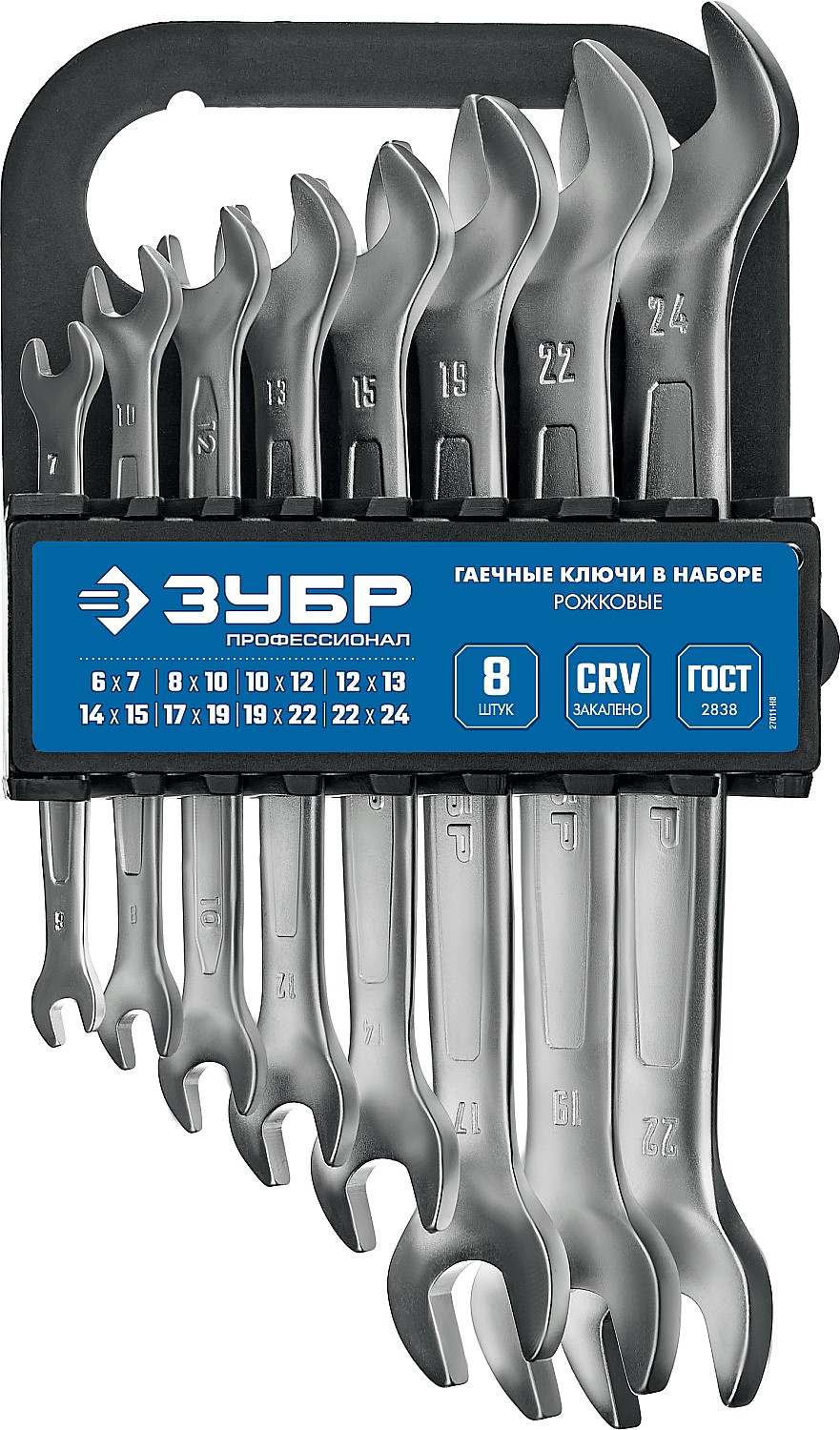 ЗУБР 8 шт, 6 - 24 мм, набор рожковых гаечных ключей, Профессионал (27011-H8)