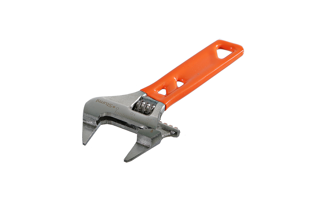 Рабочий профиль на 70% тоньше обычных ключей. Сверхтонкие губки и малая длина рукоятки позволяют работать в труднодоступных местах и с самыми тонкими гайками. Особенно удобны при использовании 2 ключей одновременно.