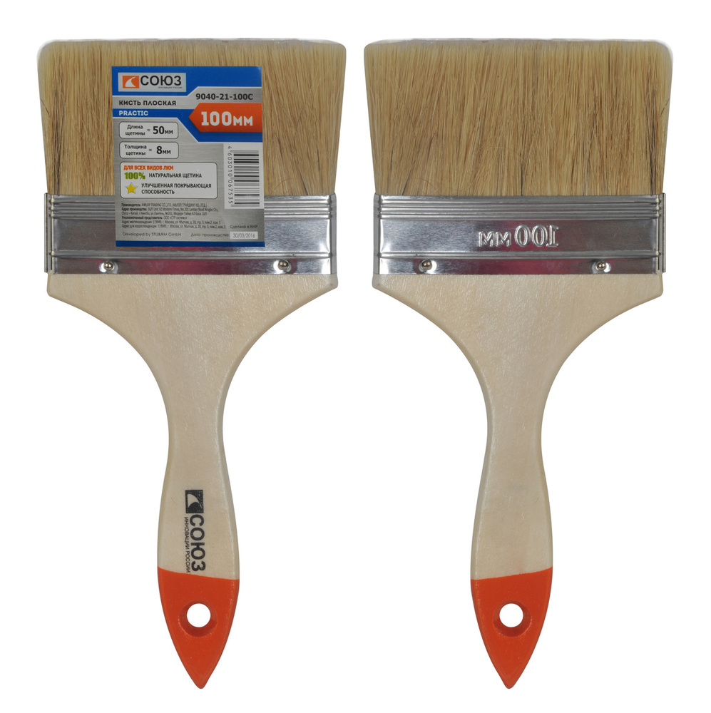 Кисть плоская &quotПрактик&quot 4&quot (100 мм), натуральная щетина СОЮЗ