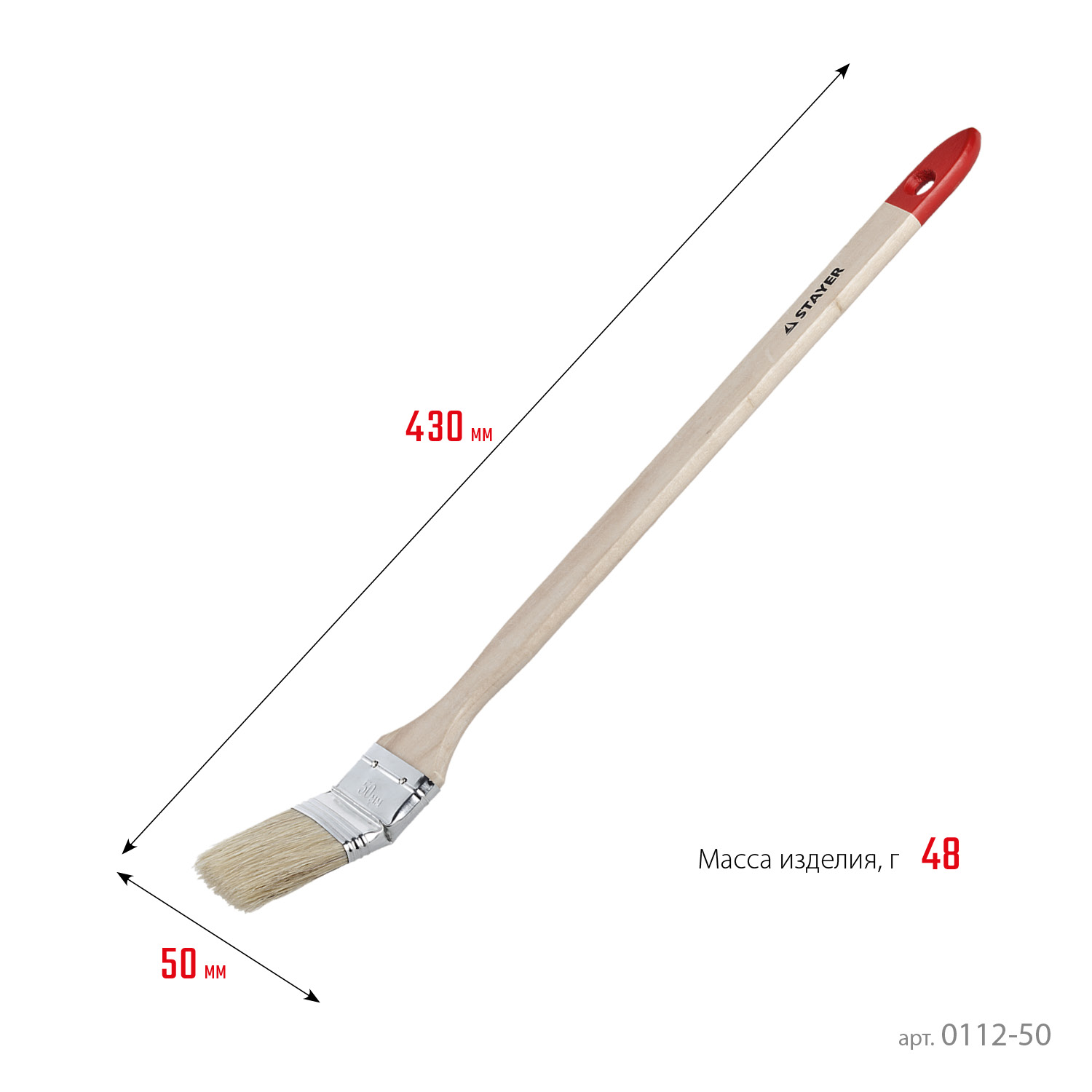 STAYER UNIVERSAL, 50 мм, 2″, светлая натуральная щетина, деревянная ручка, все виды ЛКМ, радиаторная кисть , радиаторная кисть (0112-50)