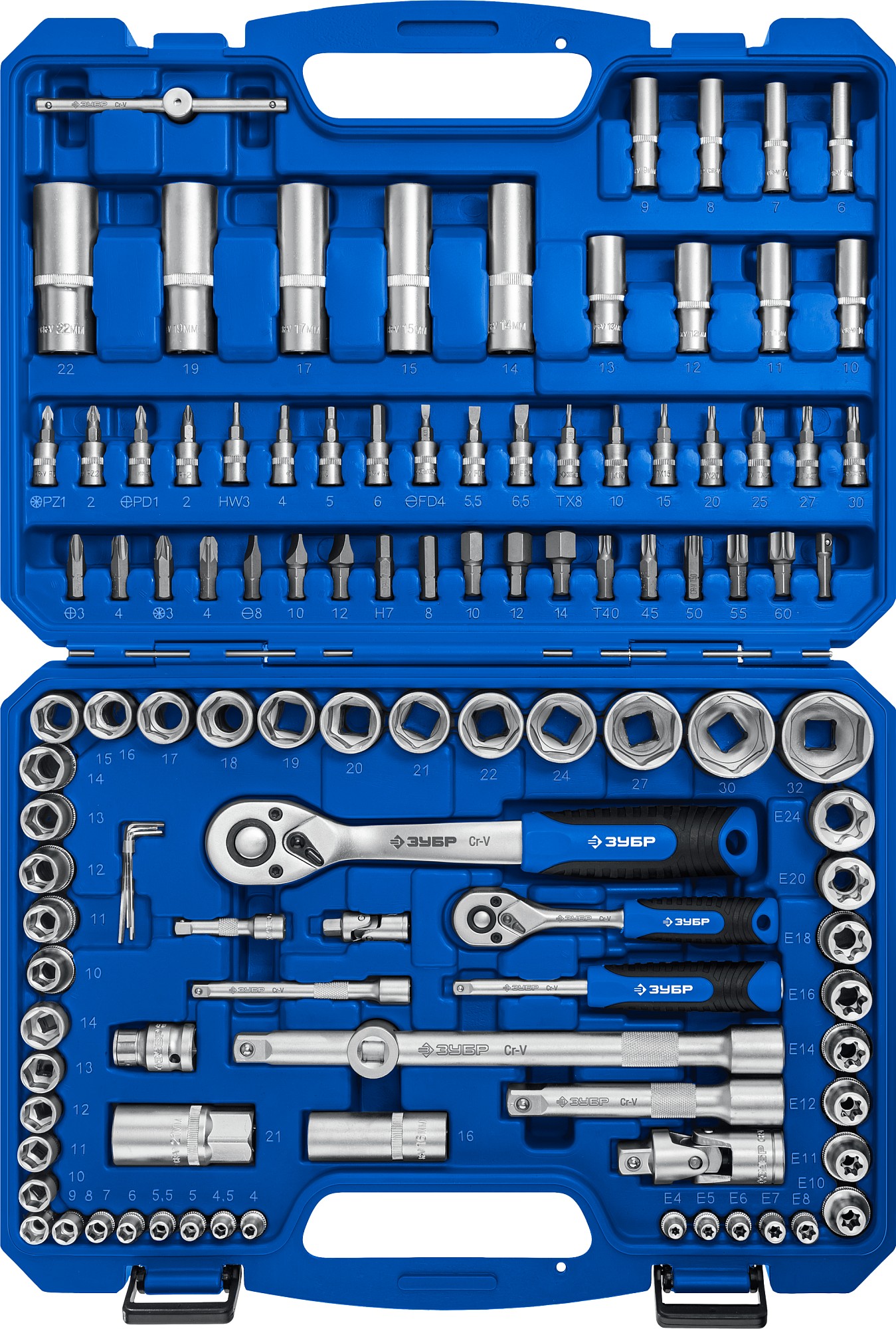 ЗУБР А-110, 110 предм., (1/2″ + 1/4″), универсальный набор инструмента, Профессионал (27635-H110)