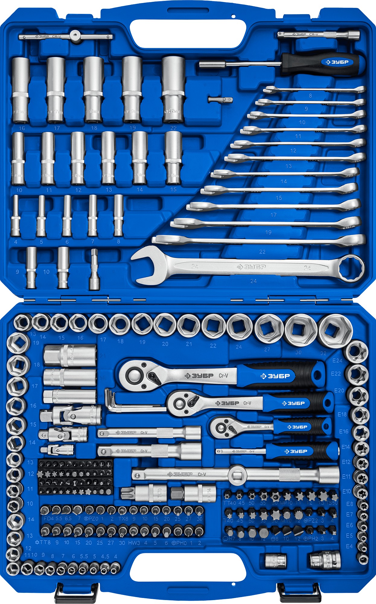 ЗУБР А-216, 216 предм., (1/2″+ 3/8″+ 1/4″), универсальный набор инструмента, Профессионал (27674-H216)