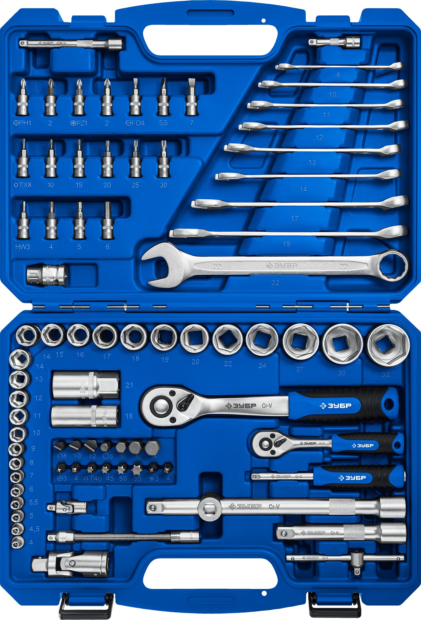 ЗУБР А-82, 82 предм.,(1/2″ + 1/4″), универсальный набор инструмента, Профессионал (27635-H82)