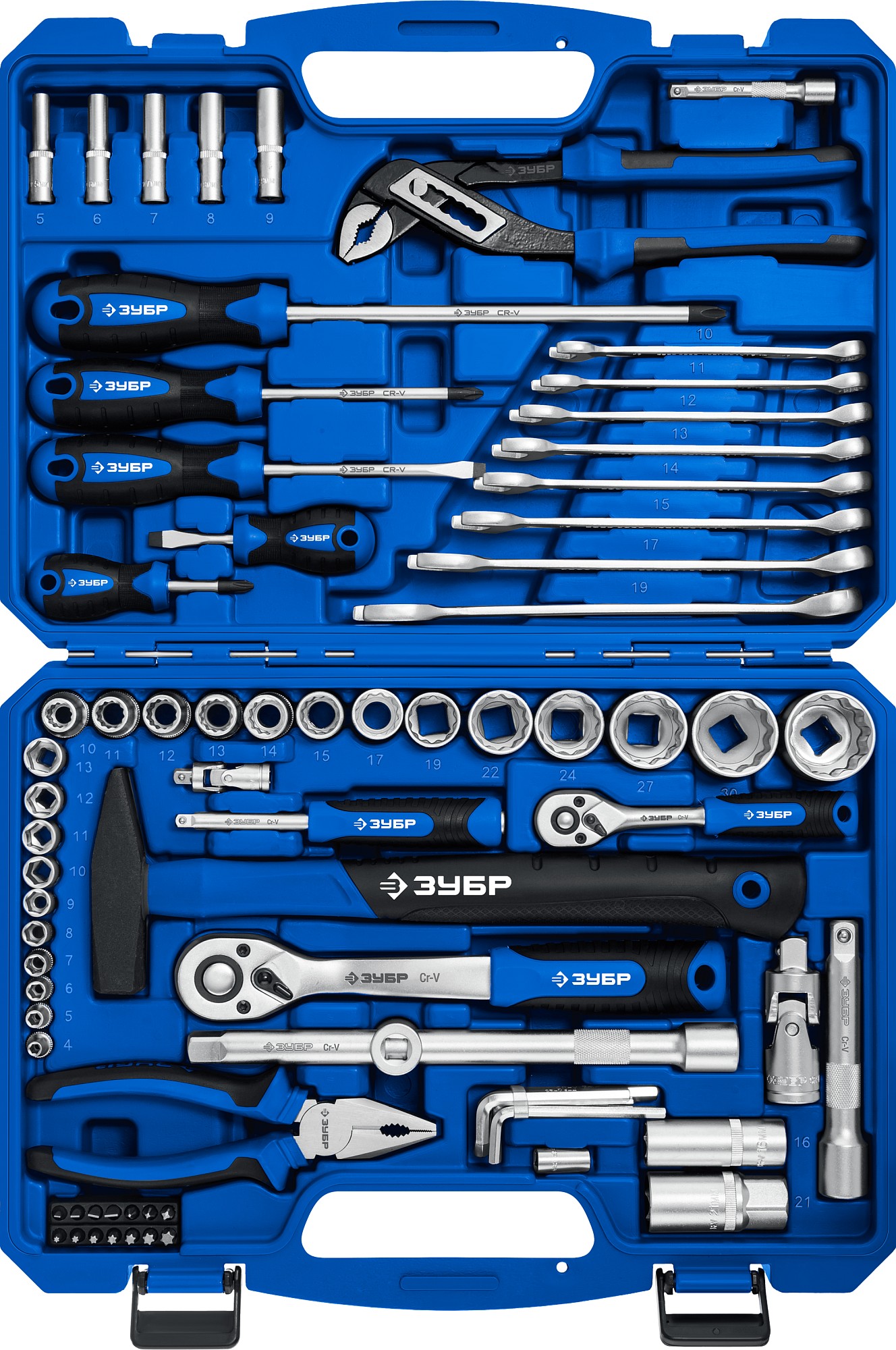 ЗУБР Универсал-63, 63 предм., (1/2″+ 1/4″), универсальный набор инструмента, Профессионал (27670-H58)