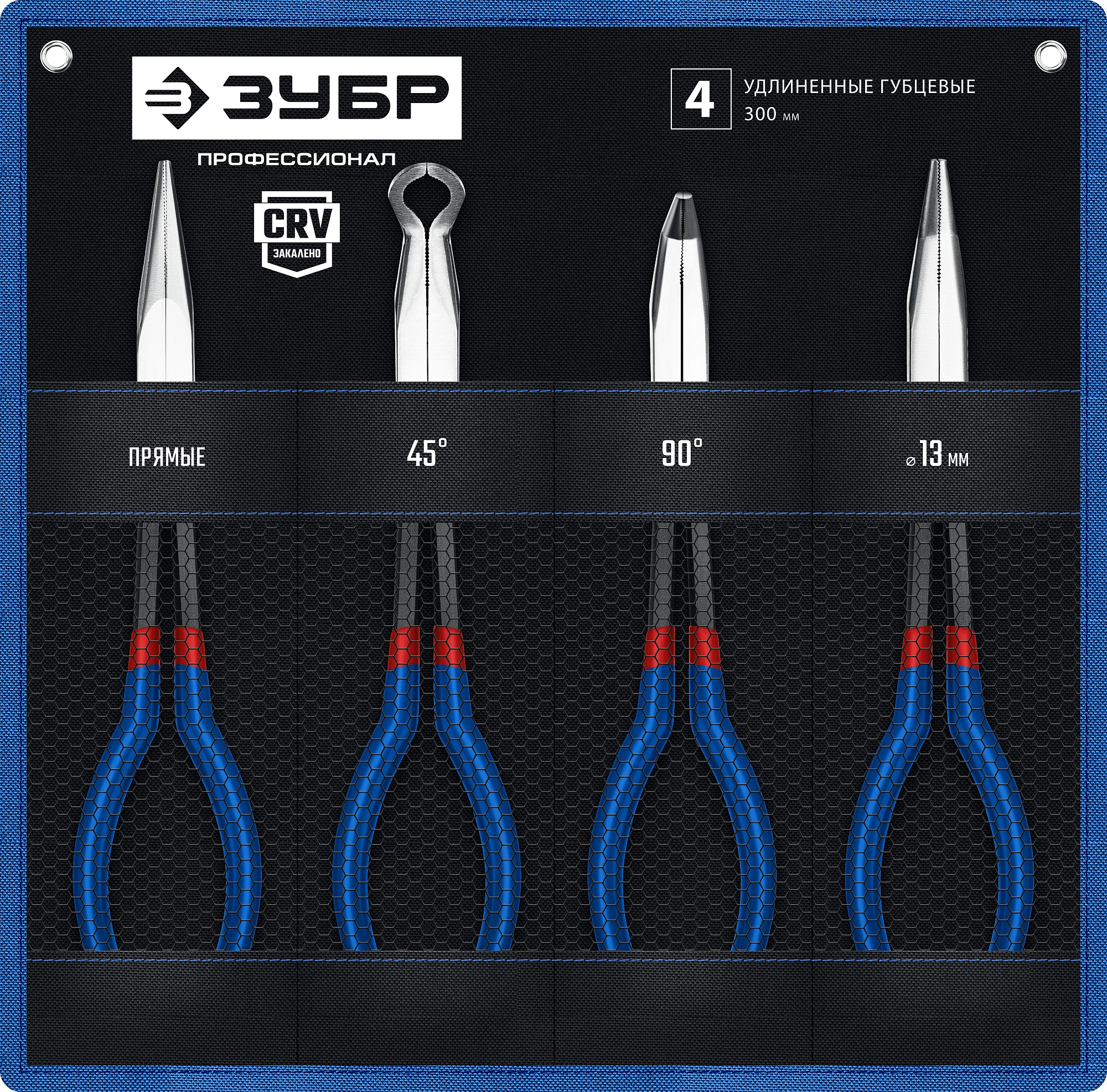 ЗУБР 4 шт, набор удлиненного губцевого инструмента, Профессионал (22026)