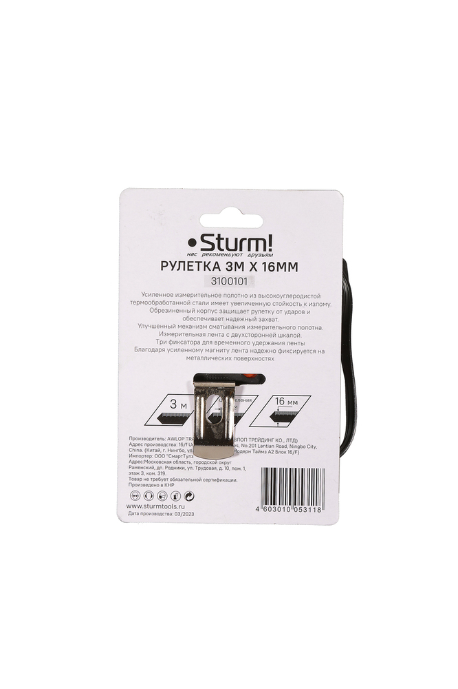 Рулетка имеет двухстороннюю шкалу с крупным шрифтом и белый фон, которые обеспечивают хорошую читаемость шкалы.
