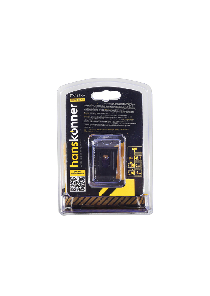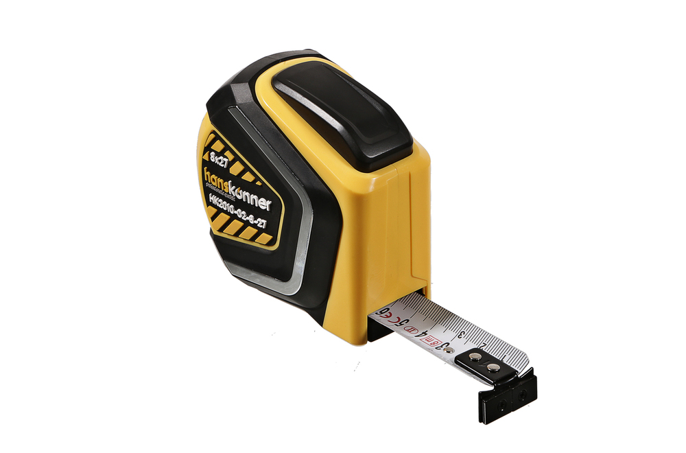 Рулетка 8x27мм, автостоп, двухстор., нейлон, супермощный магнит, Hanskonner