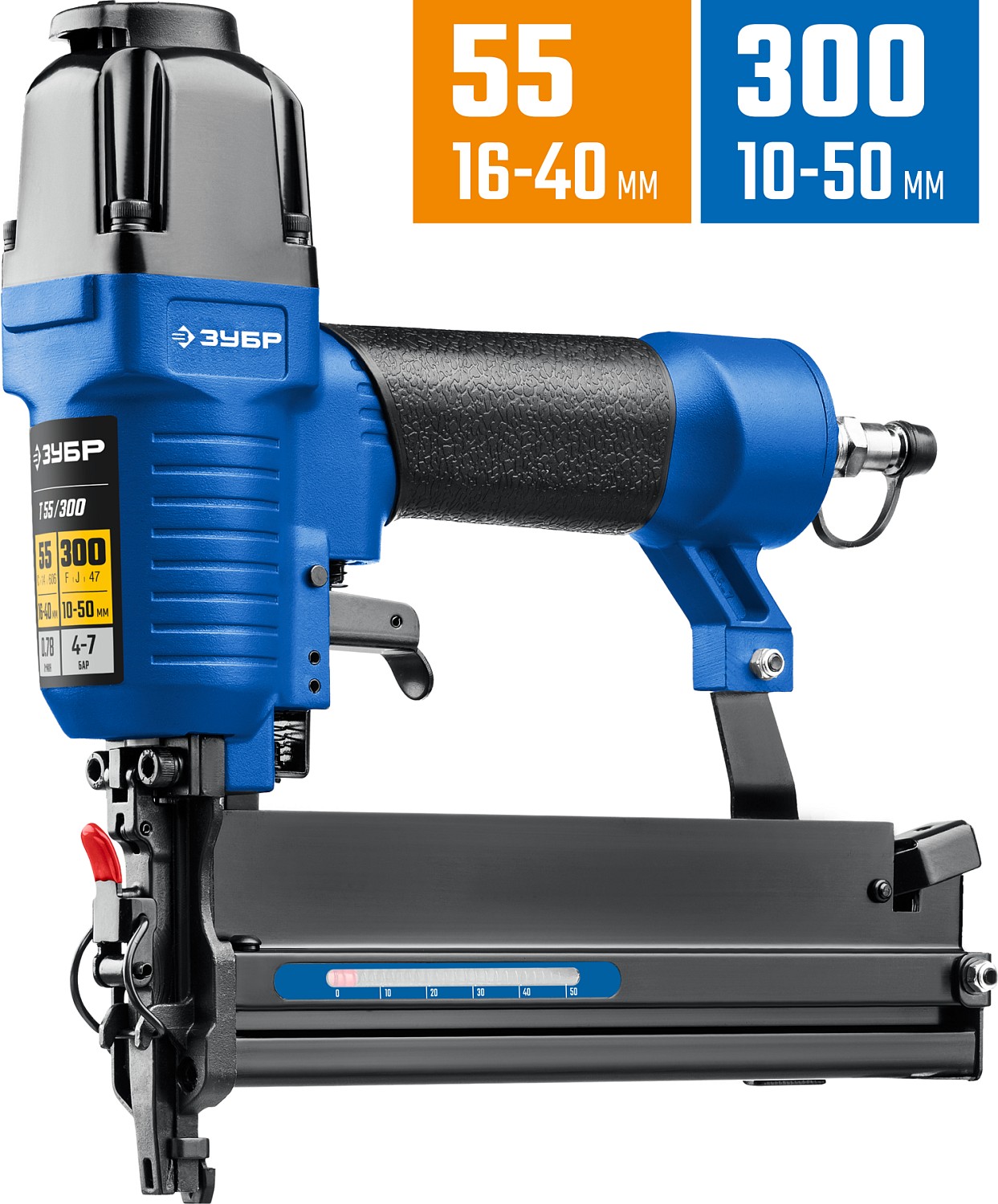 ЗУБР Т55/300, пневматический нейлер-степлер 18Ga 2-в-1: для скоб тип 55 и гвоздей тип 300, Профессионал (31937)