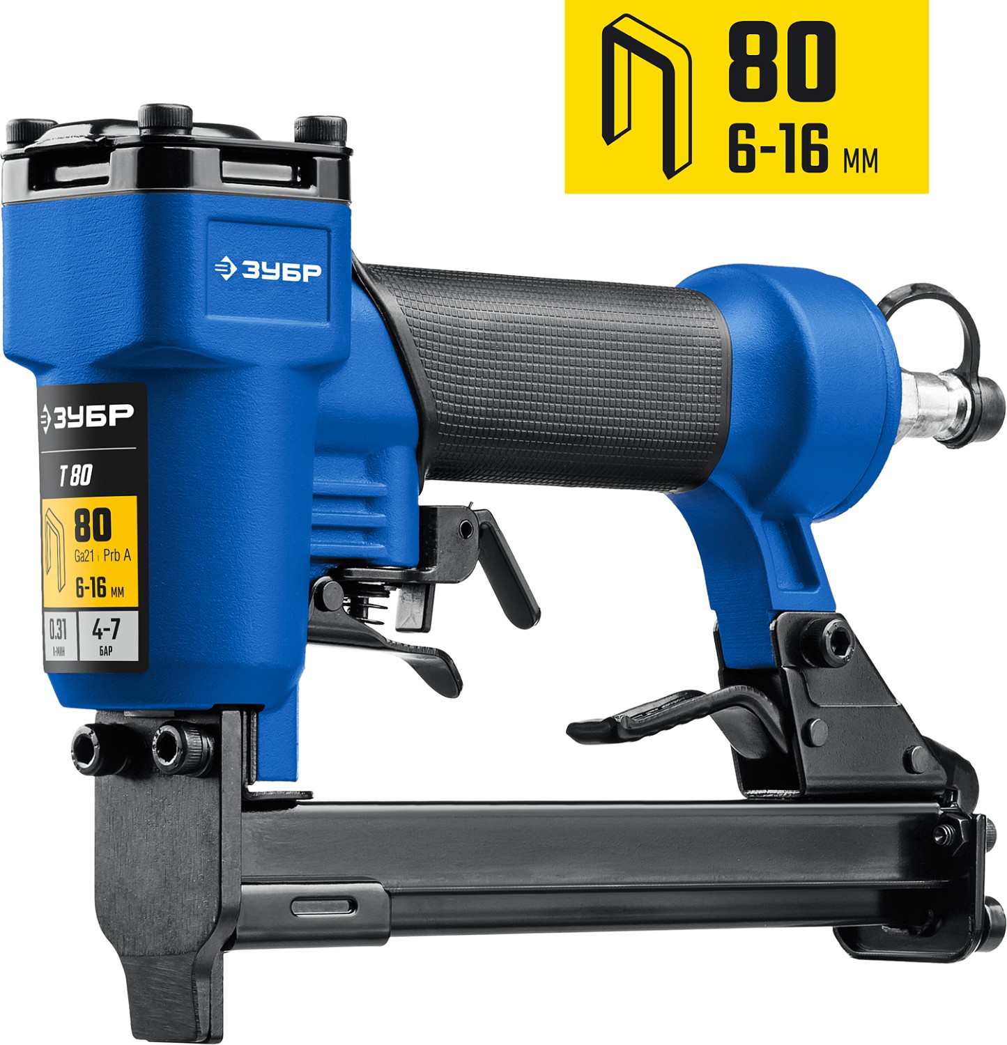 ЗУБР Т80, пневматический степлер для скоб 21Ga, тип 80 (6-16 мм), Профессионал (31938)