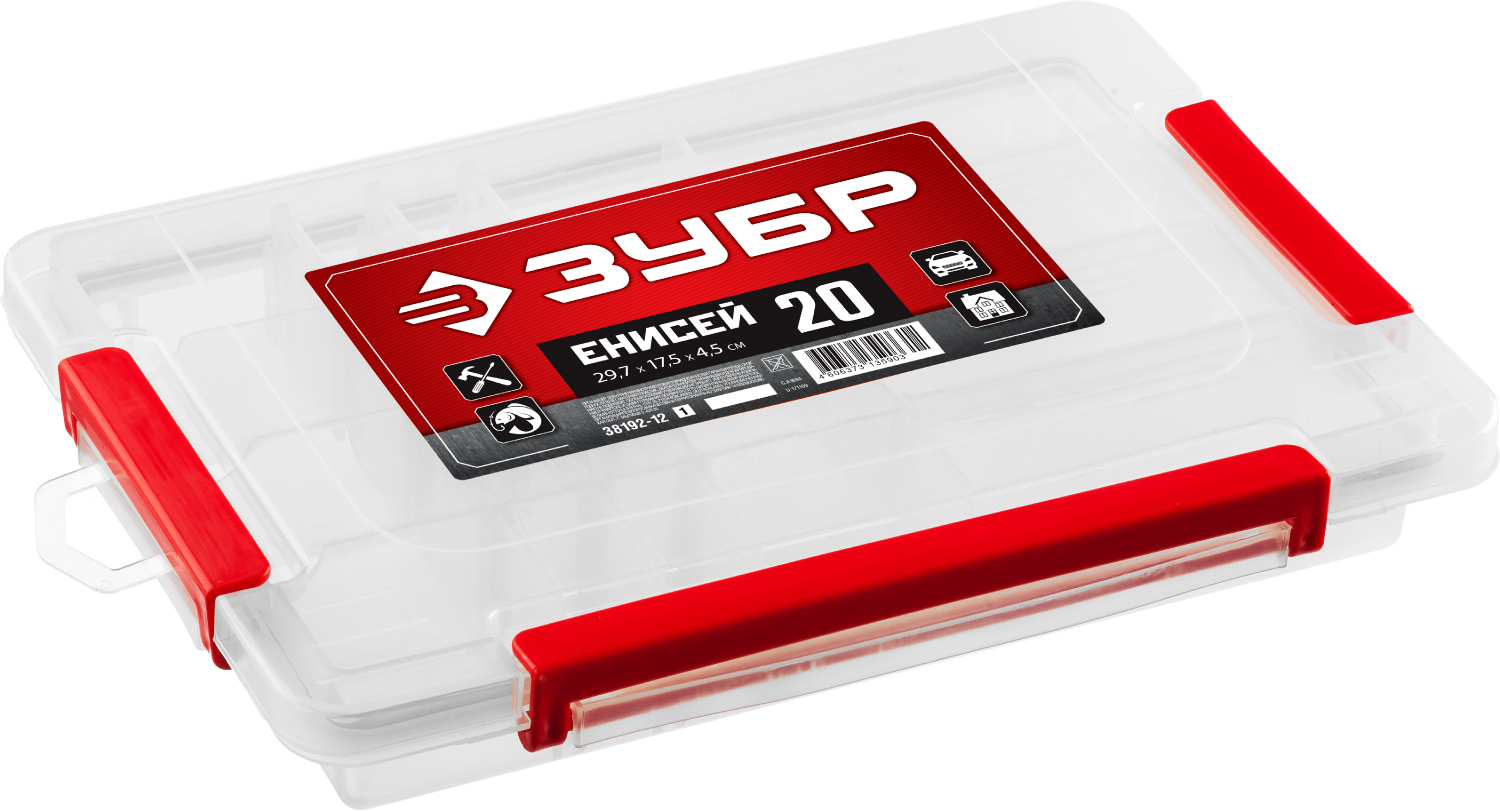 ЗУБР ЕНИСЕЙ-20, 297 х 175 х 45 мм, (12″), пластиковый органайзер c 15 регулируемыми ячейками (38192-12)