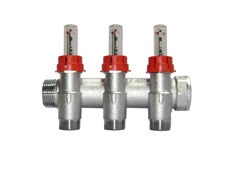 - Коллекторы сборные винтовые с вентилем различной модификации ЗУБР и General Fittings;