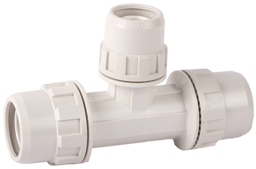 ЗУБР ШиреФит, штуцер с гайкой - внутренняя резьба - штуцер с гайкой, 26 мм - 20 мм - 26 мм, редукционный тройник (51506-26-20-26)