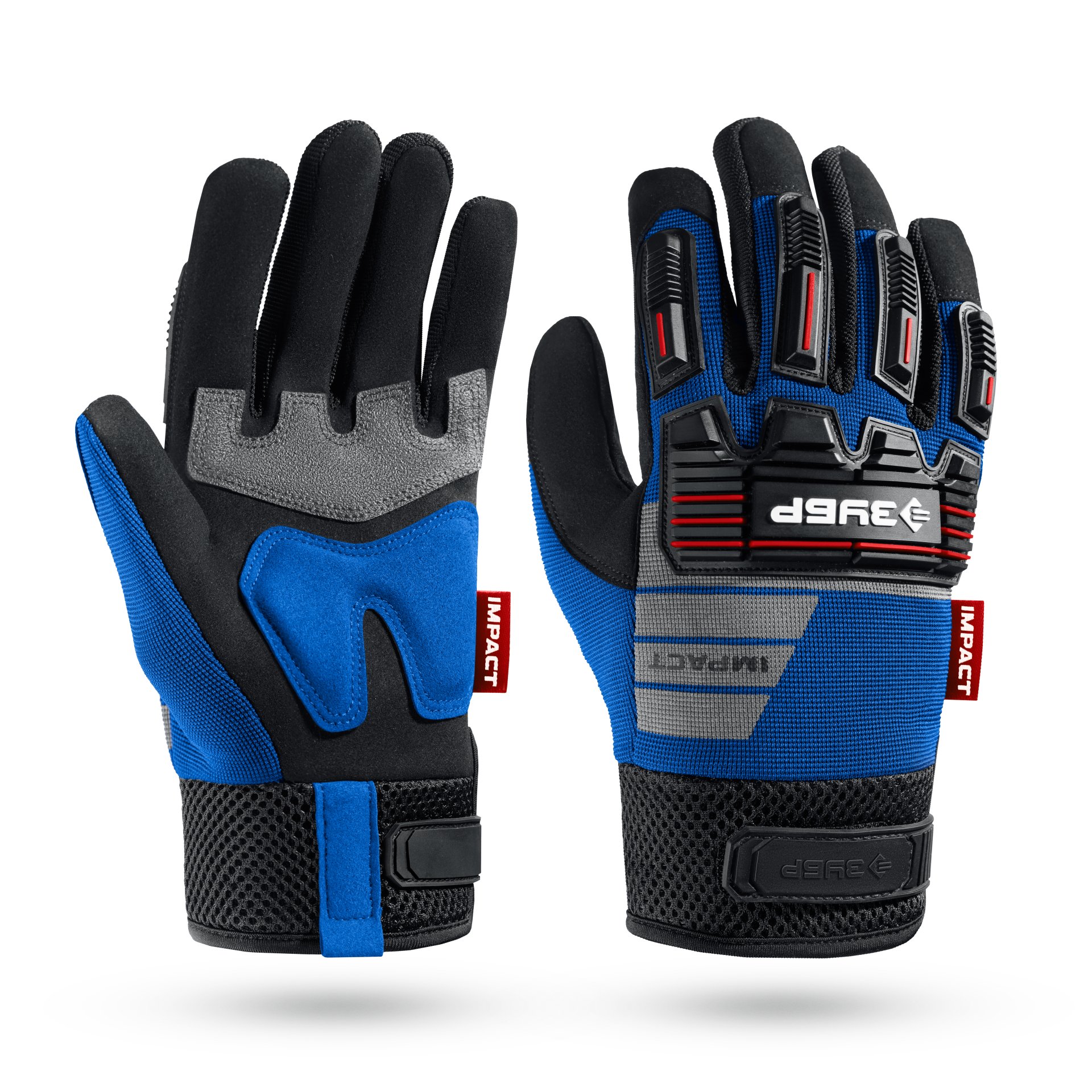 ЗУБР IMPACT р.L (9), синие, профессиональные комбинированные перчатки, антивибрационные, противоударные, Профессионал (11476-L)