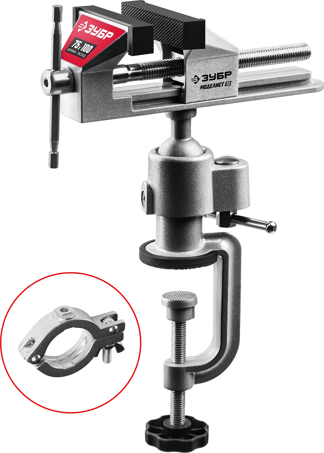 -Быстрая и надежная установка тисков на столе осуществляется с помощью струбцины;