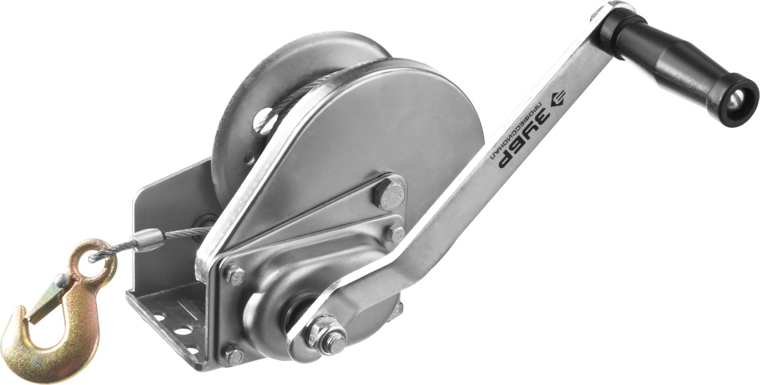 ЗУБР 1.1 т, 8 м, ручная барабанная тяговая тросовая лебедка, Профессионал (43113-1.1)
