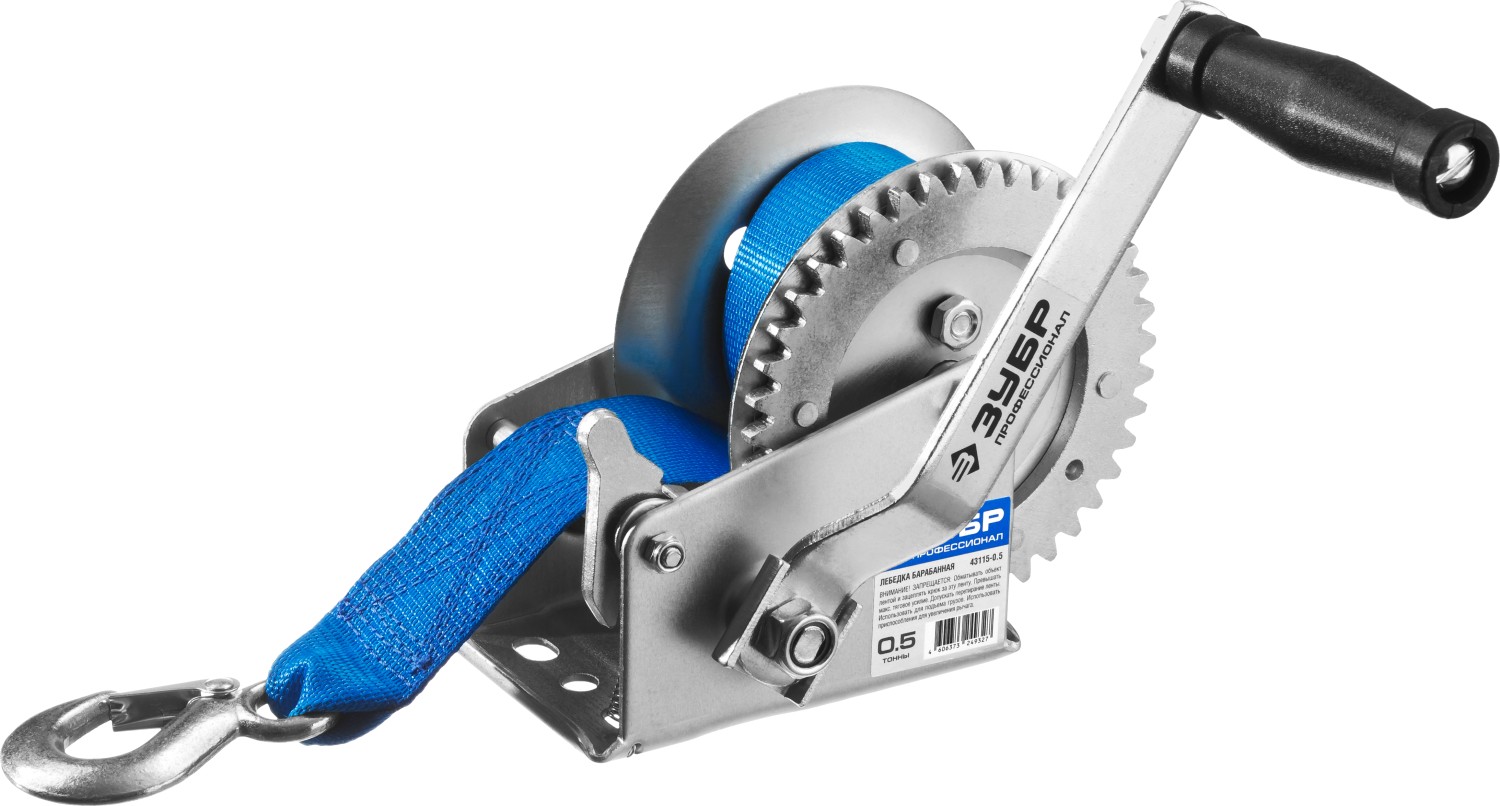 ЗУБР 0.5 т, 8 м, ручная барабанная тяговая ленточная лебедка, Профессионал (43115-0.5)
