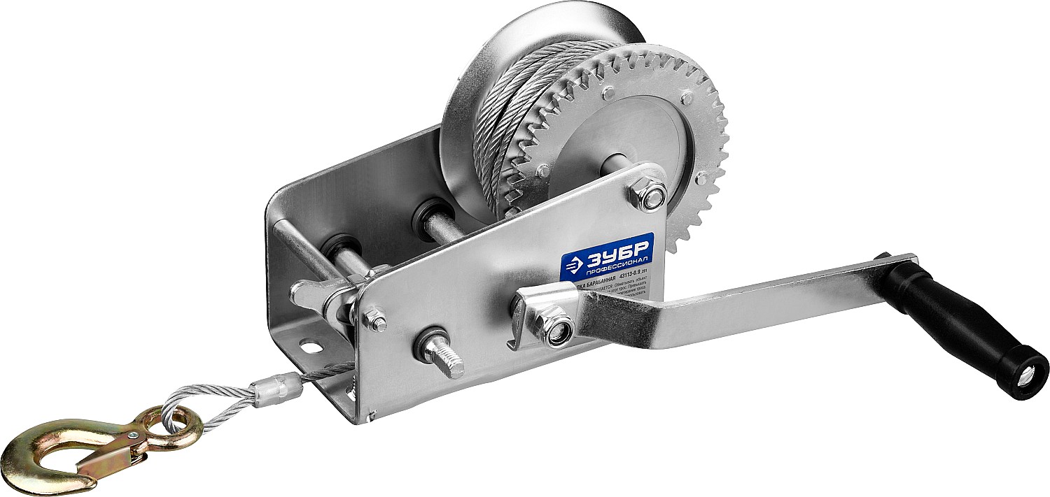 ЗУБР 1.1 т, 8 м, ручная барабанная тяговая тросовая лебедка, Профессионал (43113-1.1)