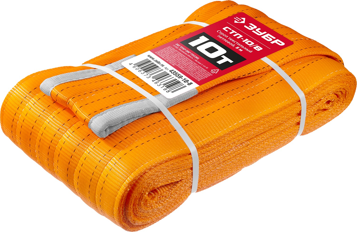 ЗУБР СТП-10/8, оранжевый, г/п 10 т, длина 8 м, текстильный петлевой строп (43559-10-8)