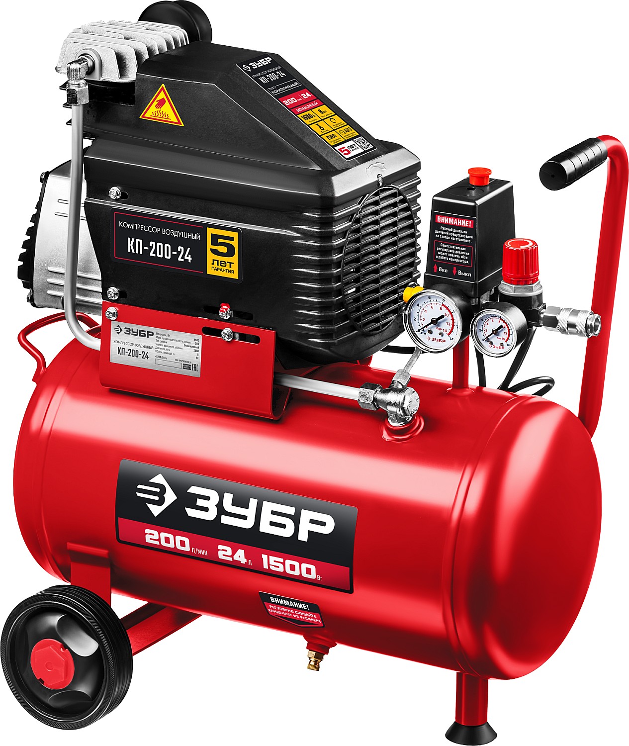 -Контроль давления в ресивере и на выходе при помощи двух манометров;