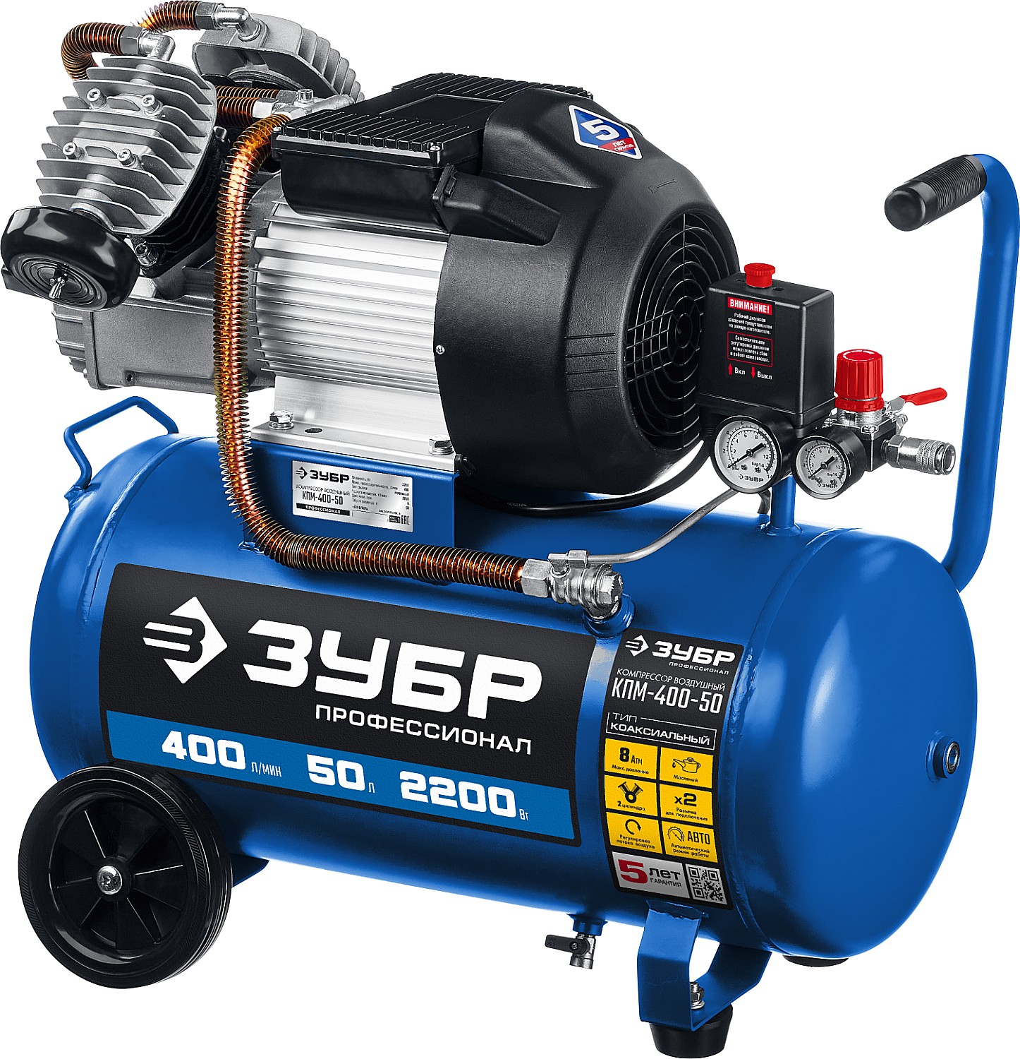 ЗУБР 400 л/мин, 50 л, 2200 Вт, масляный компрессор, Профессионал (КПМ-400-50)