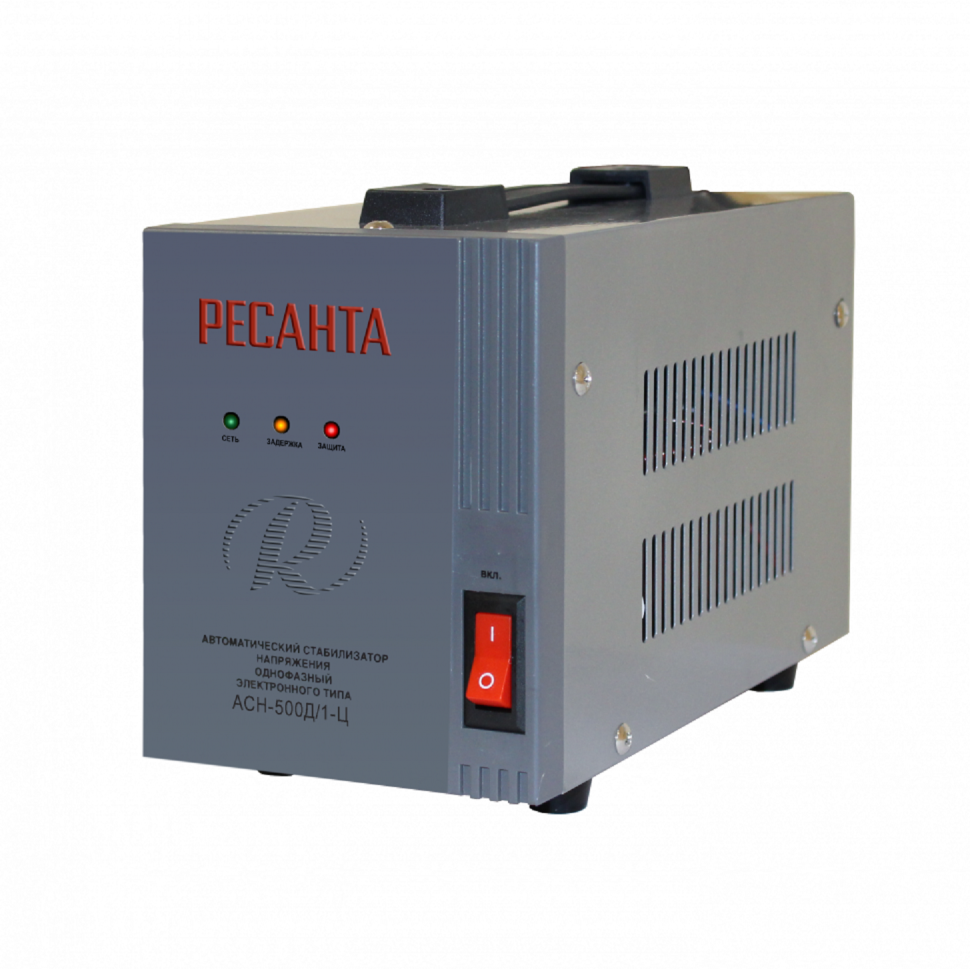 Стабилизатор напряжения Ресанта АСН-500Д/1-Ц предназначен для поддержания стабильного напряжения сети и питания электроприборов бытового назначения 220В, 50 Гц. Колебания напряжения в сети выше допустимых норм приводят к отрицательным последствиям для электрооборудования.Стабилизатор Ресанта АСН-500Д/1-Ц предназначен для обеспечения качественной работы различных бытовых устройств в условиях нестабильного по значению напряжения в сети. Данная серия разработана в соответствии с международными стандартами для защиты подключенных устройств от аварийных скачков электроэнергии. Серия АСН-500Д/1-Ц относится к релейному типу стабилизаторов, обеспечивающих ступенчатое регулирование выходного напряжения с высокой точностью его поддержания.Предназначен для работы в условиях климата с диапазоном рабочих температур от -10 до +40°С и относительной влажности не более 80%