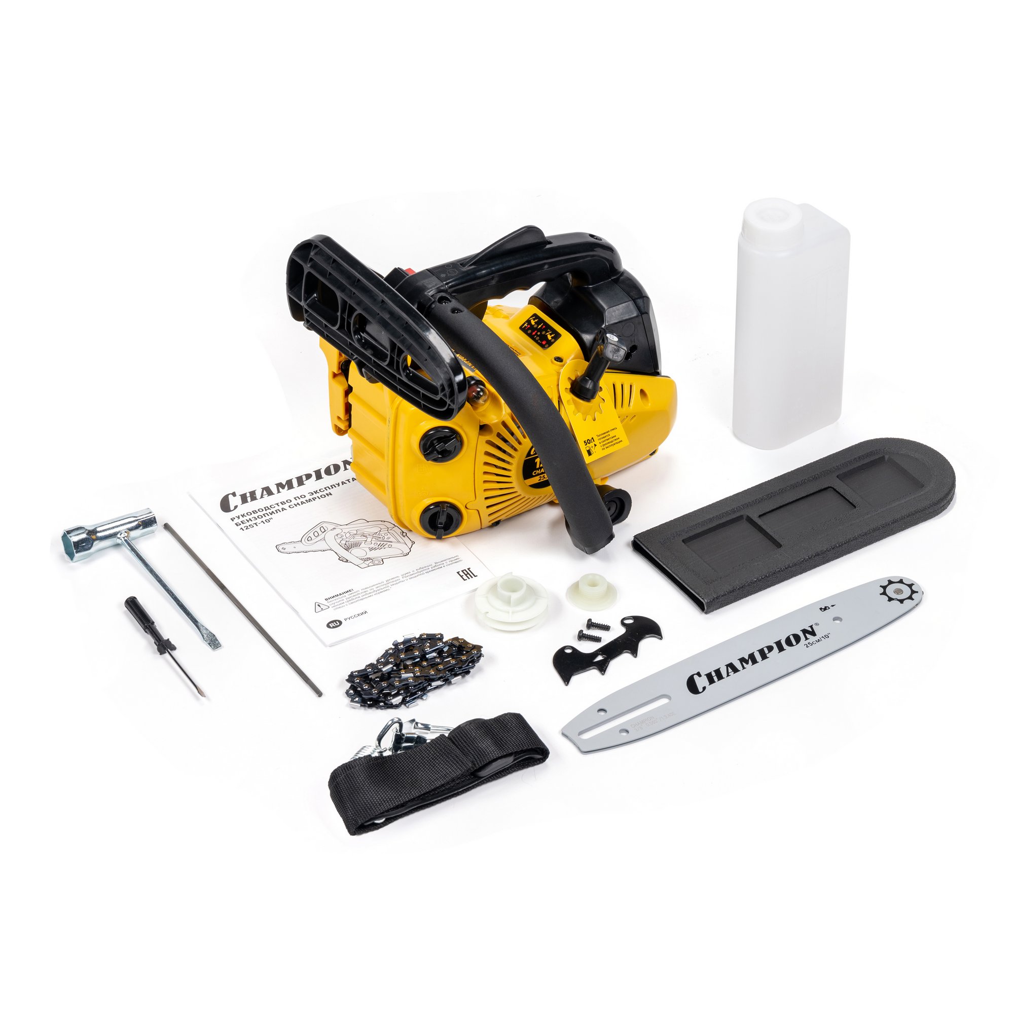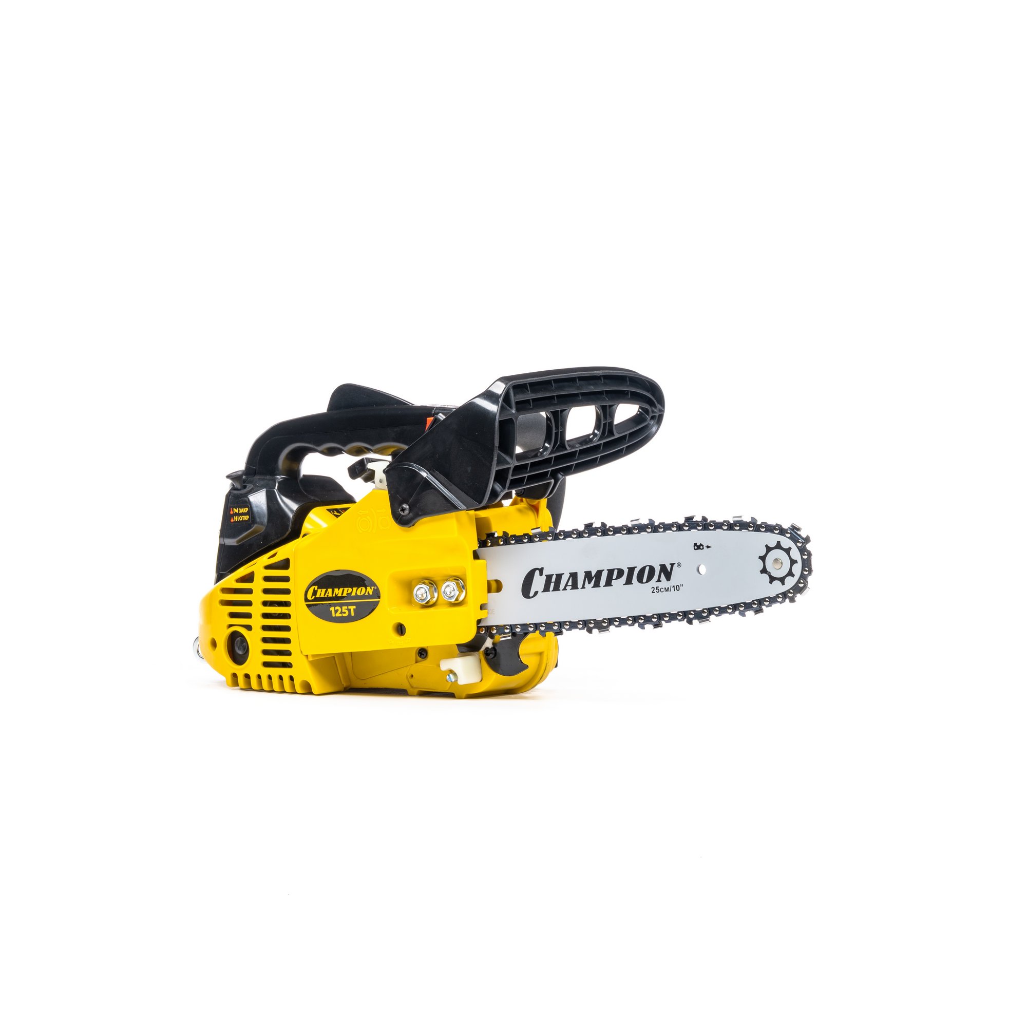 Бензиновая цепная пила Champion 125T-10 благодаря своей компактности и небольшому весу оптимально подходит садоводам и альпинистам для легких работ на высоте.