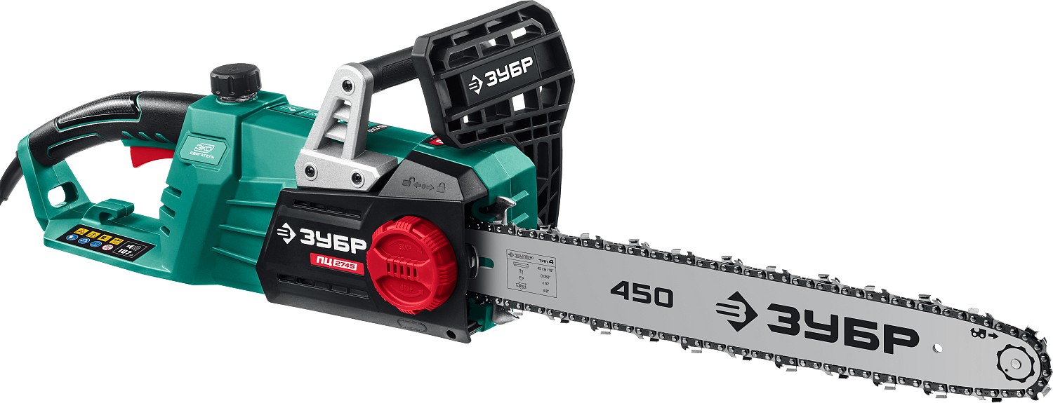 -Шина длиной 450 мм позволяет распиливать заготовки большого диаметра;