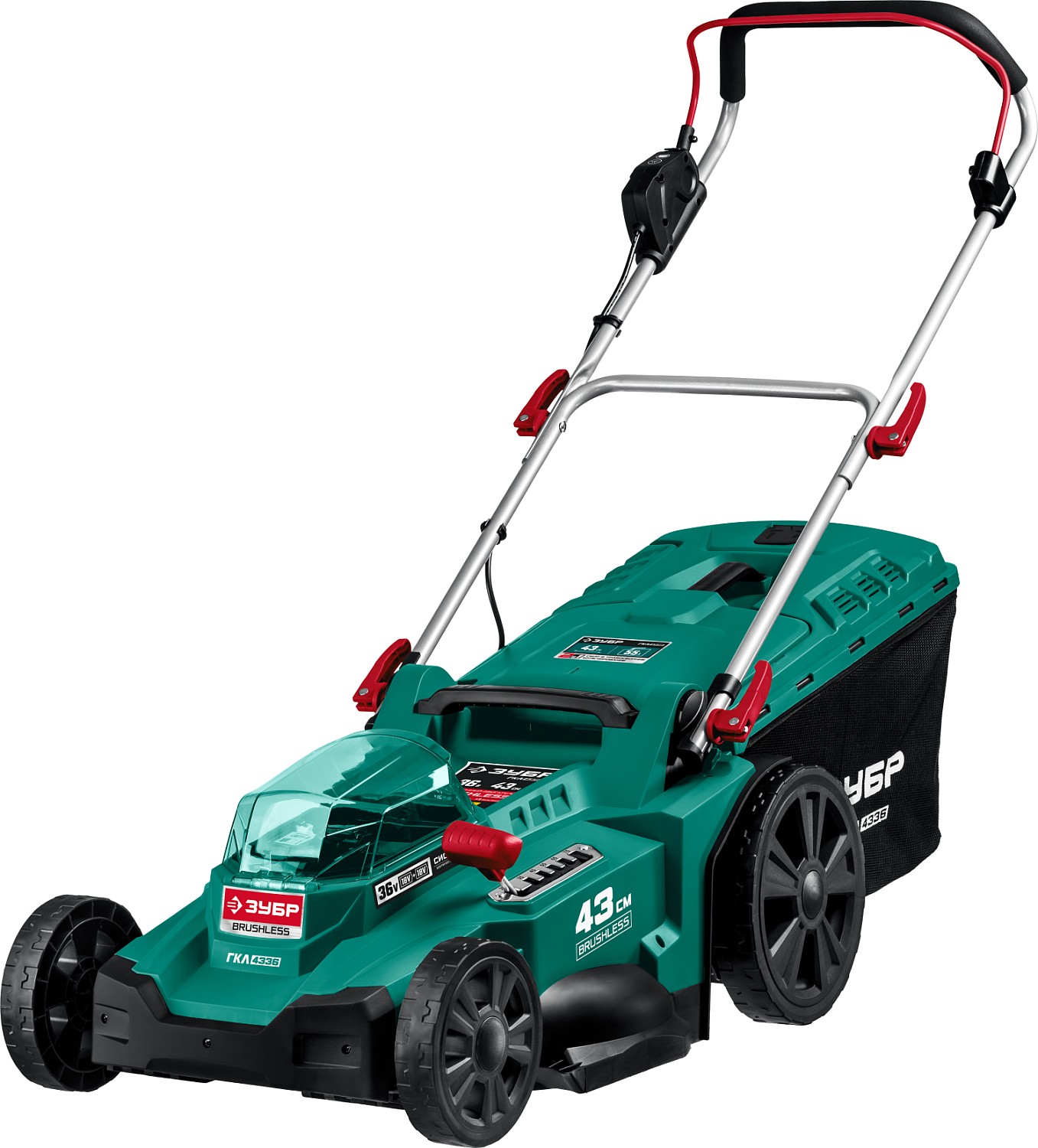 -Мощный двигатель напряжением 36 В ускоряет процесс обработки, а увеличенная ширина 43 см кошения ускоряют работу;