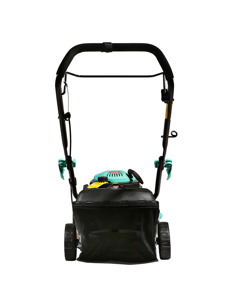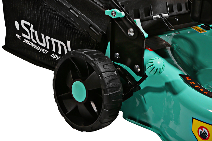 Вместительный 40-ка литровый тканевый травосборник не создает помех при движении по неровному ландшафту и при разворотах газонокосилки, а также удобен при транспортировке газонокосилки в автомобиле.