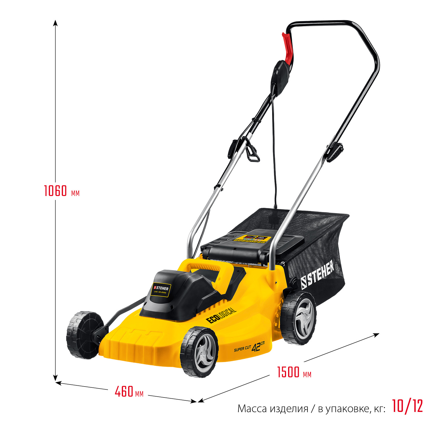 -Облегченные колеса и эргономичная рукоятка облегчают перемещение косилки по газону;